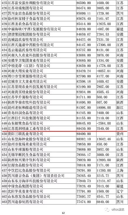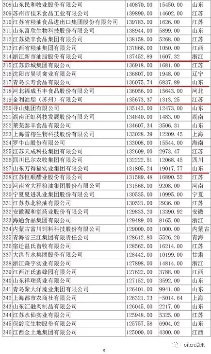 本次入圍門檻為6.7億元,多家主營油脂業務的企業上榜,山東、江蘇兩省入圍油企數量最多。