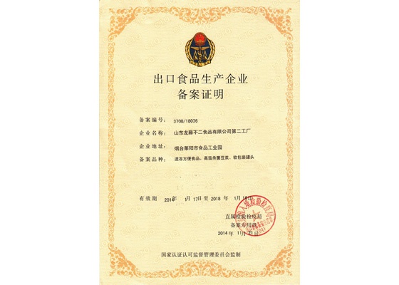 014年11月21日,山東龍騰不二食品有限公司第二工廠收到山東出入境檢驗檢疫局《出口食品生產企業備案證明》。這意味著該工廠生產的軟包裝罐頭,成功打開了出口日本的“通道”。